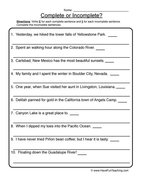 Learners practice adding a subject or a predicate to complete sentences,. Web examples of incomplete in a sentence, how to use it. Web going from writing simple words to composing complete sentences can be an intimidating leap, but our writing sentences worksheets help ensure a soft landing thanks to dozens.